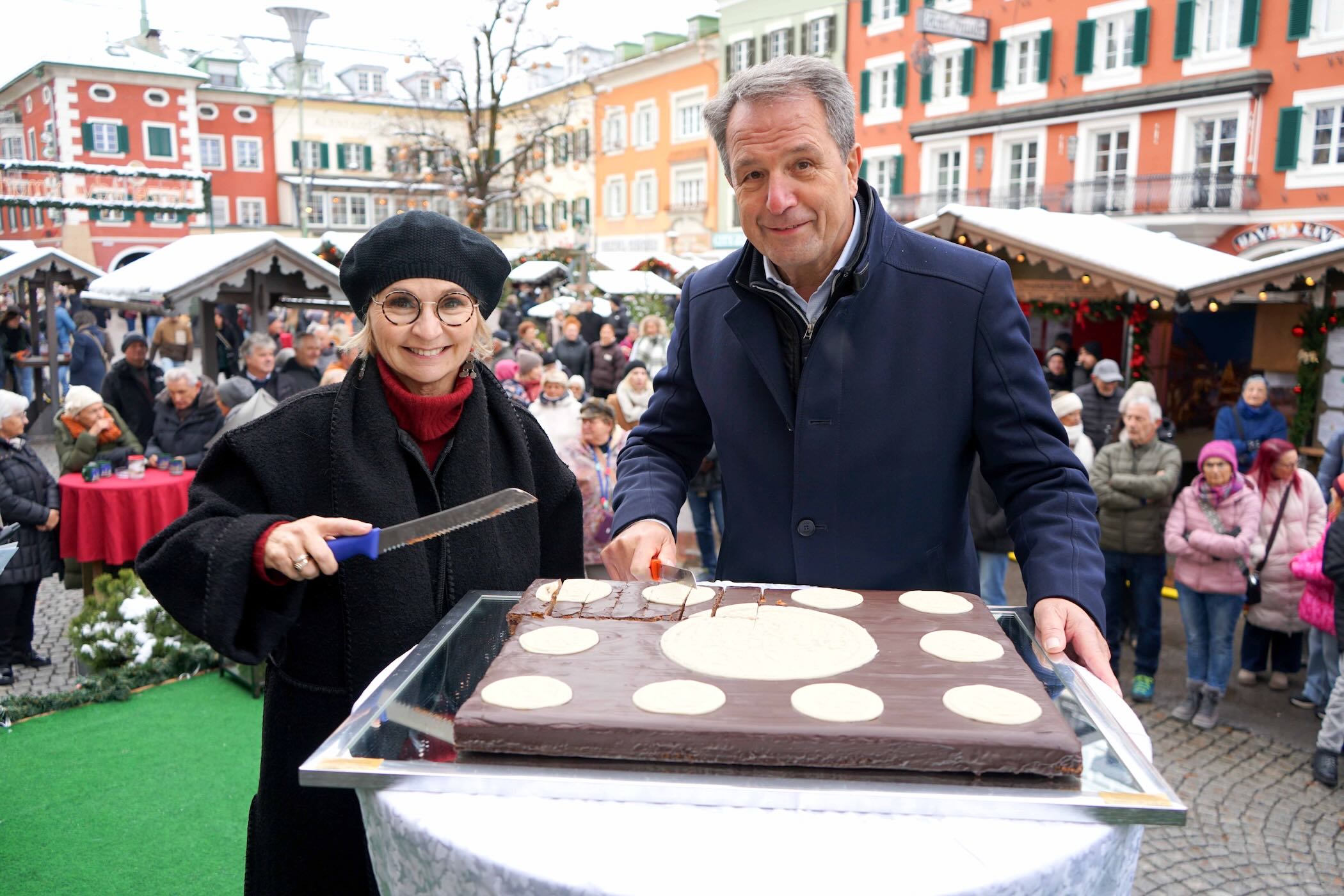 Am 21. November wurde mit dem schon bekannten Ritual der 29. Lienzer Adventmarkt eröffnet, umrahmt von Bläsermusik und „angezuckert“ vom ersten Schnee dieses Jahres. Natürlich gab es auch heuer wieder „Lienzer Lebzelten für alle“, zubereitet von den Bäckern der Stadt nach traditionellem Rezept und portioniert diesmal von Bürgermeisterin Elisabeth Blanik und Gemeinderat Franz Theurl. Auf der Bühne fand sich allerhand Prominenz ein und rund um die Standln bildeten sich die ersten Menschentrauben.