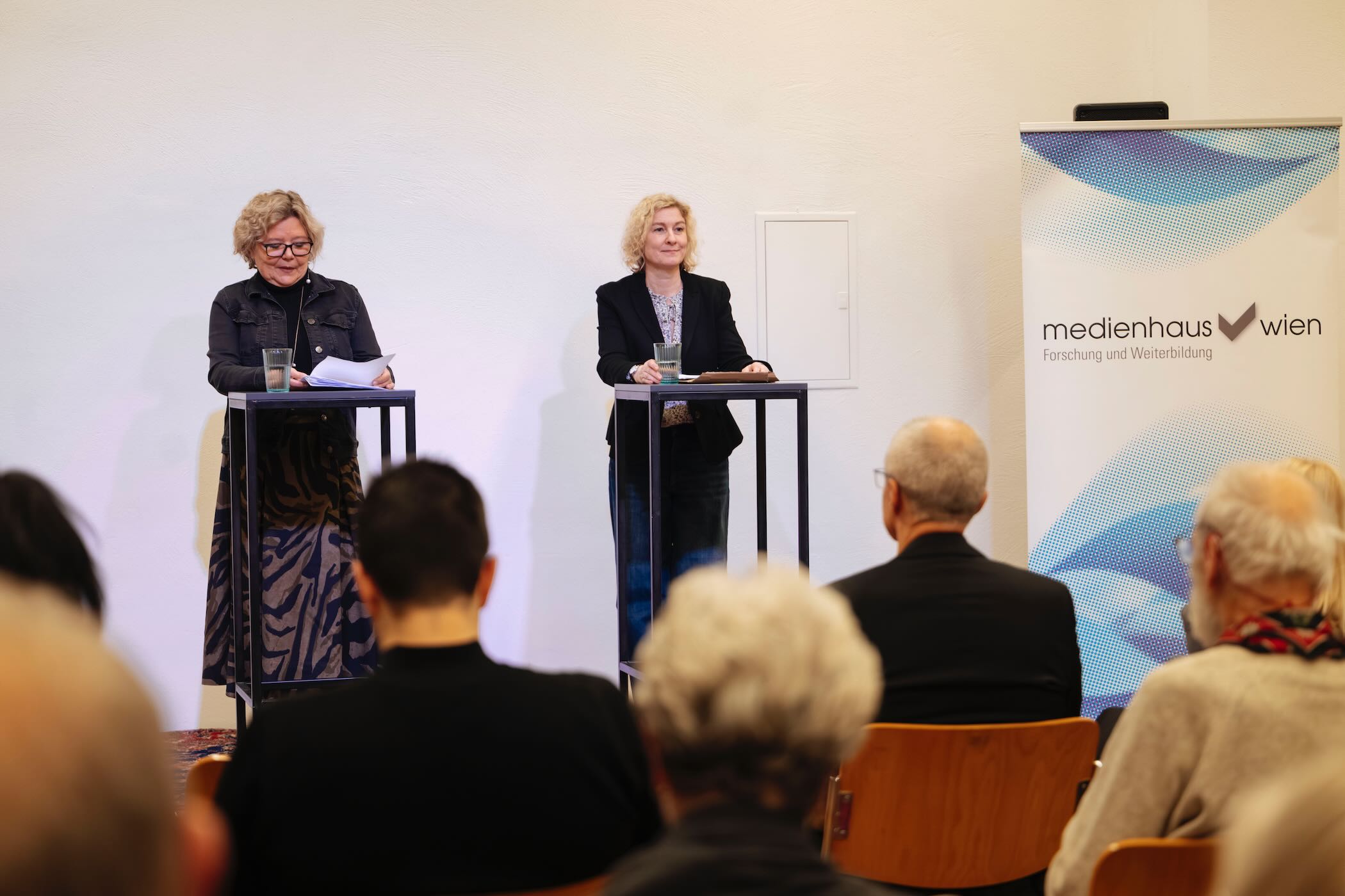 Ebenfalls kein Zufall war die geteilte Vergabe des Preises an zwei Journalist:innen aus sehr unterschiedlichen Regionen: „Es soll die Zusammenführung von zwei Teilen eines Ganzen sein – eine Anerkennung des Lokaljournalismus in seiner Vielfältigkeit“, erklärte Renée Lugschitz, wissenschaftliche Mitarbeiterin im Medienhaus Wien.