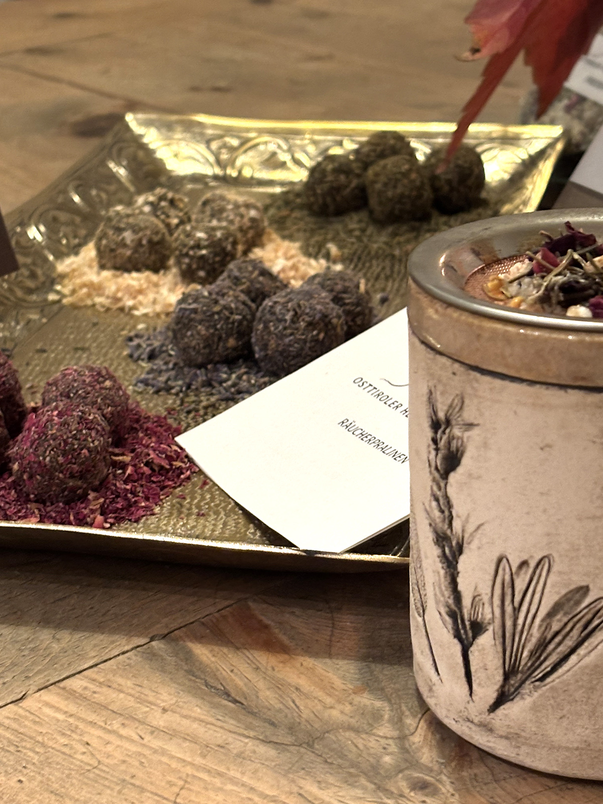 Viel Freude bereitet Christine Wallensteiner sowohl die Kooperation mit dem „Tonlodn“ in Matrei, der formschöne Räucherstövchen aus Keramik herstellt als auch mit Stefanie Tembl vom Osttiroler Bienenladen, deren Bienenlichter Räucherwerk und Bienenwachs perfekt vereinen. Im reichhaltigen Räucherzubehör findet man auch Räucherpfannen von Rudl Duregger, dem Onkel von Christine. Der leidenschaftliche Schmied fertigt seine Unikate in Handarbeit. Ideal für alle, die gerne mit Glut oder Kohle räuchern.