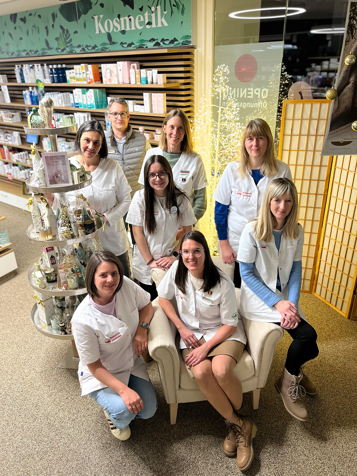 Die Dekoration in der Apotheke sorgt zusätzlich für eine einladende Atmosphäre – warme Farbtöne, weiche Stoffe, liebevolle Details und kleine Hingucker schaffen eine gemütliche, vorweihnachtliche Stimmung, die zum Verweilen, Stöbern und Inspirieren einlädt.