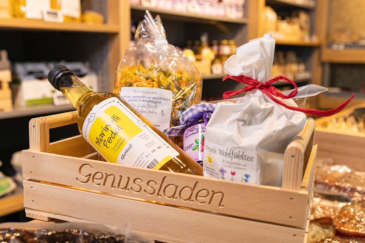 Der „Genussladen 24/7“ in der Messinggasse in Lienz hat rund um die Uhr geöffnet – Tag und Nacht, auch am Wochenende und an Feiertagen. Im kleinen Selbstbedienungsladen des Lienzer Stadtmarkts erwartet Besucher:innen eine große Auswahl an regionalen Köstlichkeiten und Spezialitäten. Besonders beliebt in der Weihnachtszeit sind die Genusskistln. Drei verschieden große Holzkistln stehen zur Auswahl und können individuell mit Lieblingsprodukten befüllt werden. Über 380 Schmankerl von 43 regionalen Produzent:innen stehen bereit – von feinen Aufstrichen und Tees bis hin zu frischem Brot und süßen Versuchungen.
