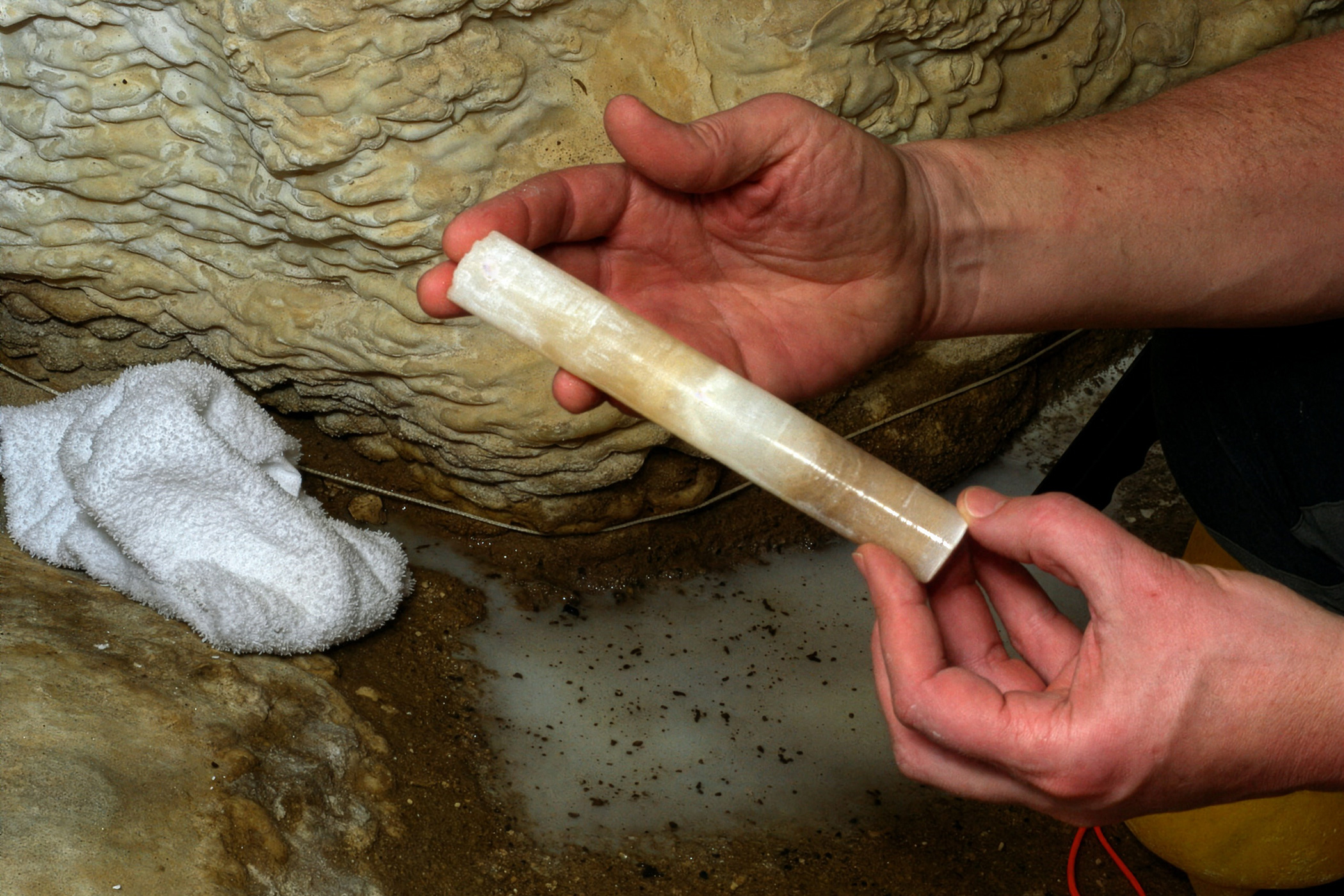 Dem Innsbrucker Expeditionsteam gelang es im Jahr 2017, einen 1 Meter langen Bohrkern aus Kalksinter aus dem tiefsten Abschnitt der Höhle „Devils Hole II“ zu entnehmen. Sauerstoffisotope in dem Kern dokumentieren ein durchgehendes Klimaarchiv über 580.000 Jahre – einschließlich der letzten sechs Eiszeiten und den dazwischen liegenden Warmzeiten. Veröffentlicht wurden die Ergebnisse kürzlich in der Fachzeitschrift Nature Communications. Neben dem Innsbrucker Team waren Forschende aus den USA, England und China an der Studie beteiligt.