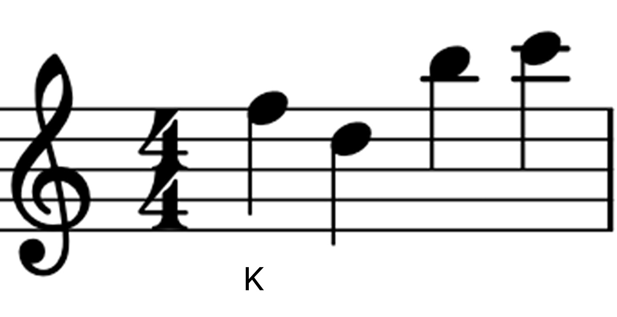 Die Note F ist das K. Das D ist zwei Noten tiefer, weshalb man im Alphabet auch zwei Buchstaben zurückgehen muss.