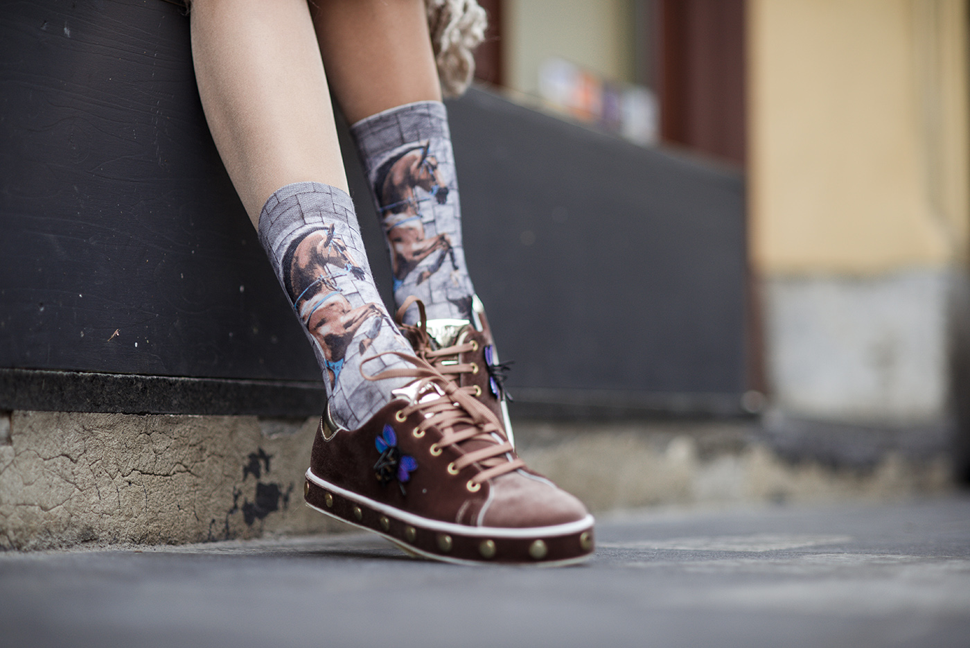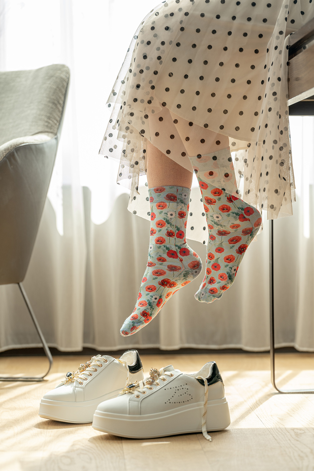 Doch das ist noch nicht alles. Atmungsaktive Membranen leiten die Feuchtigkeit vom Fuß weg, Schweißfüße gehören in Wigglesteps der Vergangenheit an. Die integrierte echte Ferse ist durchgehend gestrickt - der Strumpf passt sich also perfekt an den Fuß an. Und dann reden wir noch über die Optik! Diese Socken sind keine farblosen Duckmäuser im Dunkel der Schuhe, das sind Hingucker. „Zieht bitte die Schuhe aus“ wird beim Besuch von Freunden zur Gelegenheit, ein modisches Statement abzugeben! Natürlich sind die bunten, modischen Drucke farbecht am kompletten Strumpf, sogar unter der Ferse.