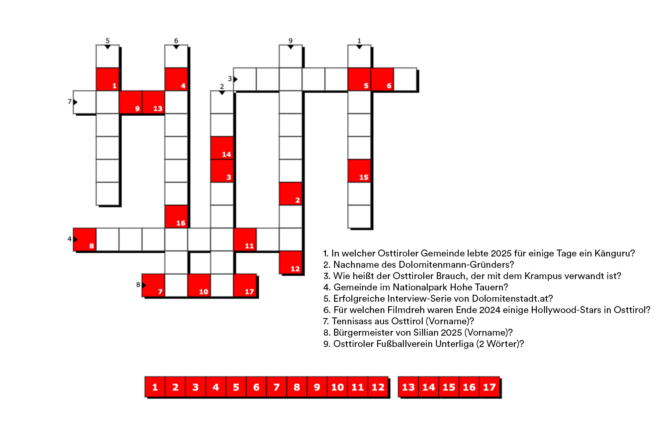 Der Dolomitenstadt Rätsel-Adventkalender 2025: Jeden Tag veröffentlichen wir ein Kapitel einer fortlaufenden Geschichte und am Ende jedes Kapitels laden wir zum Rätseln ein. Die jeweiligen Lösungen führen Lena, unsere Hauptfigur, zu ihrer nächsten Station und damit zu ihrem nächsten Hinweis. Die Geschichte spielt in Lienz und die Rätsel verstecken sich überall, in Zeilen, in Zahlen, Mustern oder an Orten der Stadt. Lese mit, knoble mit und begleite Lena durch den Advent – Schritt für Schritt und Rätsel für Rätsel, bis sich am 24. Dezember alles auflöst und es etwas zu gewinnen gibt!