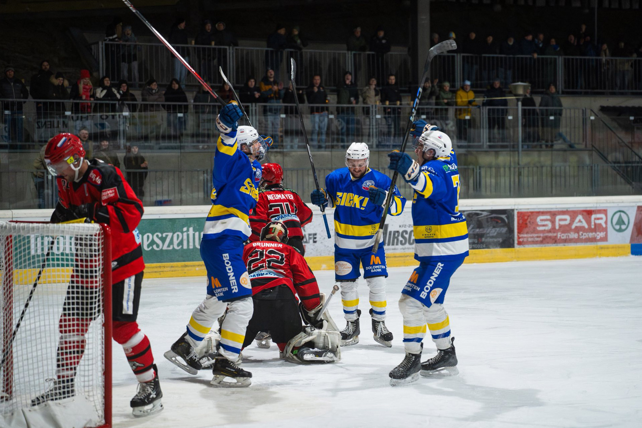 Am Freitag, 19. Dezember, stand im Eisstadion Huben das Spiel gegen die Eislöwen Lienz auf dem Programm. Bereits nach vier Minuten führten die Gäste aus Lienz mit 2:0: Christian Wernisch und Jonas Blaßnig trafen in den ersten Spielminuten. Janis Dalpra erhöhte in der 15. Minute auf 3:0, doch durch Treffer von Tobias Unterweger und Matthias Wibmer stand es während der ersten Pause 3:2.