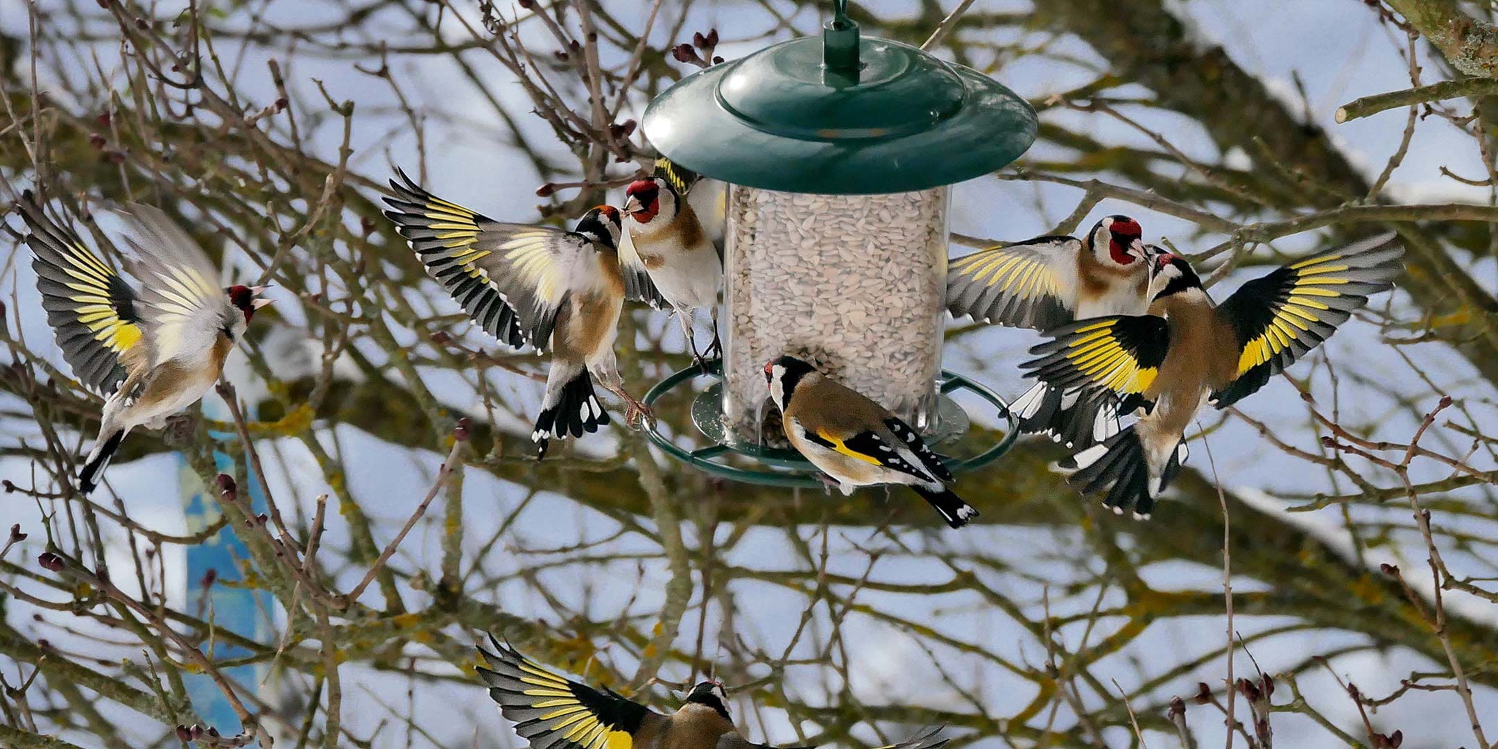 Auch bei Lage und Art der Futterstelle gibt es einiges zu beachten: Als empfehlenswert gelten Silofutterhäuser oder Futtersäulen, die in sicherer Entfernung zu einem Busch angebracht werden. Befindet sich der Busch hingegen in direkter Nähe, könnten die Tiere beim Fressen durch Katzen gestört werden, die sich dort in Deckung bringen. Auch auf den Abstand des Futterhauses zu Fensterscheiben sollte Acht genommen werden: Am gefährlichsten gelten Entfernungen von rund fünf Metern, da in diesem Fall die Geschwindigkeit hoch ist und die Tiere annehmen, dass sich die Landschaft bzw. der Himmel hinter der Scheibe fortsetzt.
