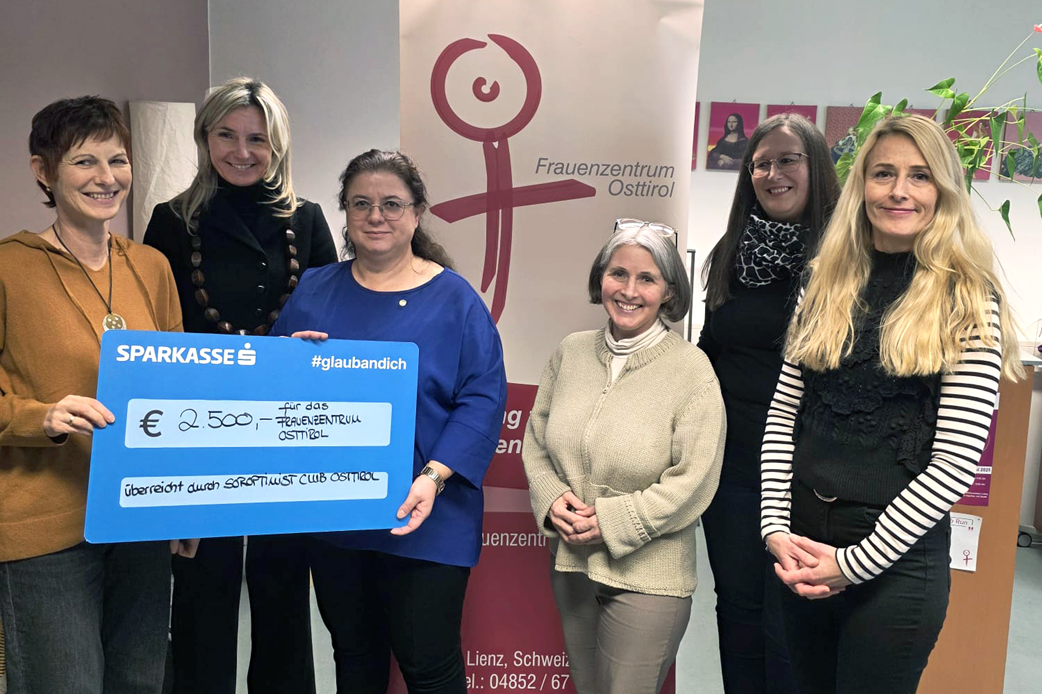 Der Soroptimist International Club Lienz/Osttirol hat dem Frauenzentrum Osttirol eine Spende in Höhe von 2.500 Euro überreicht. Die Mittel kommen der Übergangswohnung zugute und unterstützen Frauen und ihre Kinder in schwierigen Lebenssituationen mit Schutz, Sicherheit und der Chance auf einen Neustart.