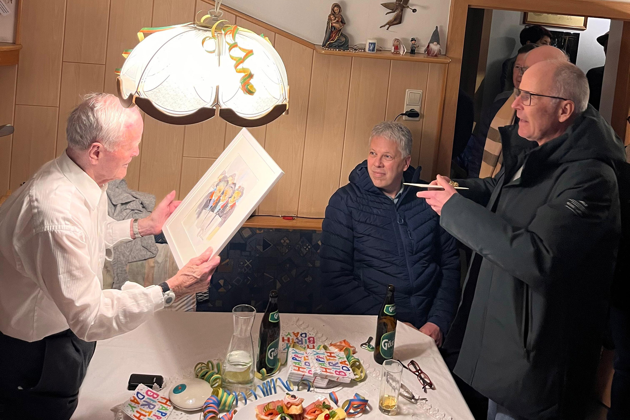 „Er bedankte sich für die gelungene Überraschung, erzählte einige Anekdoten aus der Gründungszeit des MGV sowie aus seinem langen, erfüllten und vielseitigen Leben“, berichtet Sohn Viktor Trager und ergänzt: „Auch wenn es sehr eng wurde in der Küche, freuten sich alle inklusive des Jubilars über ein paar unvergessliche Stunden und Momente.“