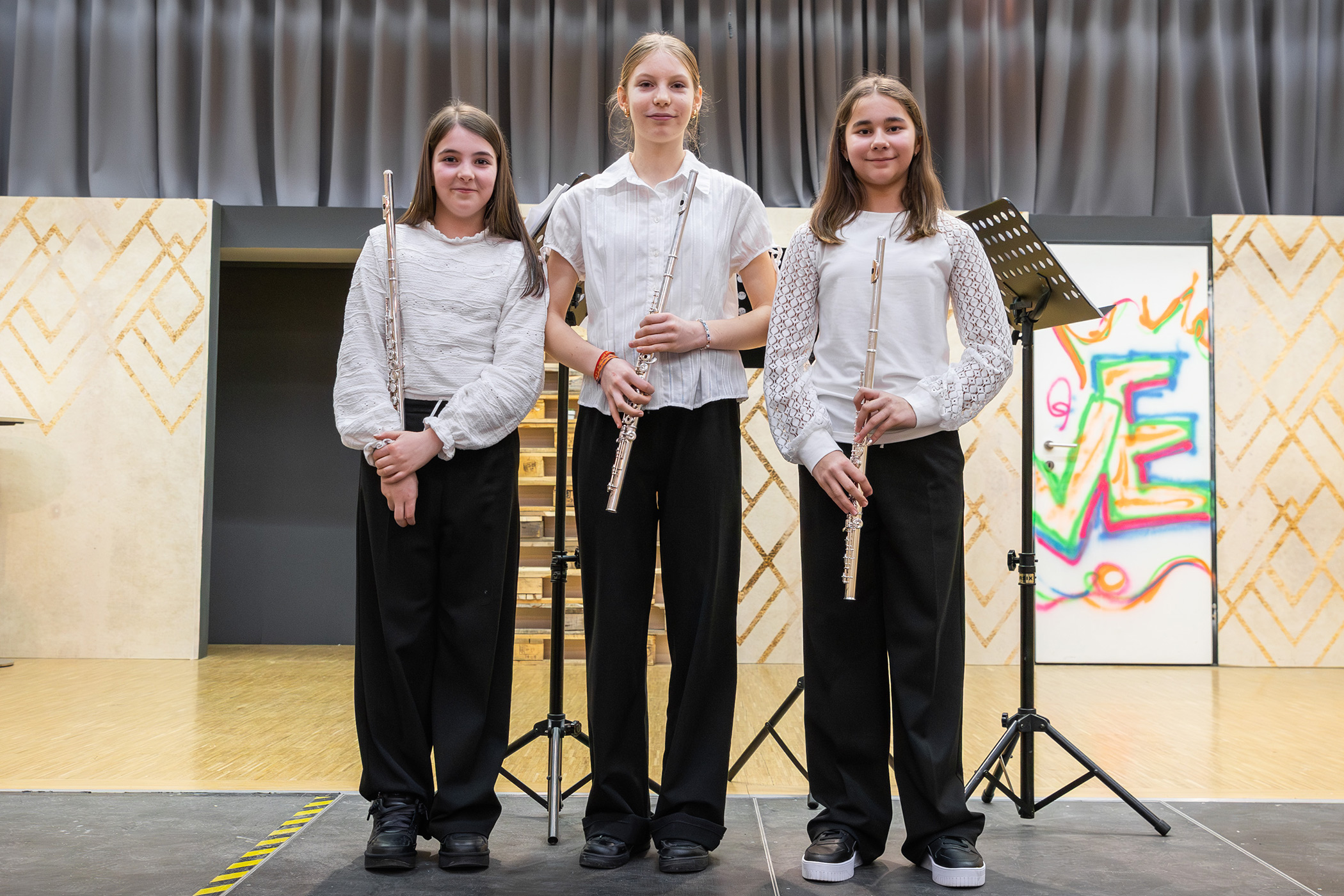 „Anmathanso“ nennt sich ein Querflötentrio der Lehrerin Barbara Hofmann. Anita Wanker, Marie Theres Egarter und Anna-Sophie Wieser musizieren sogar länderübergreifend zwischen Süd- und Osttirol und erspielten 88,33 Punkte in der Altersgruppe B.