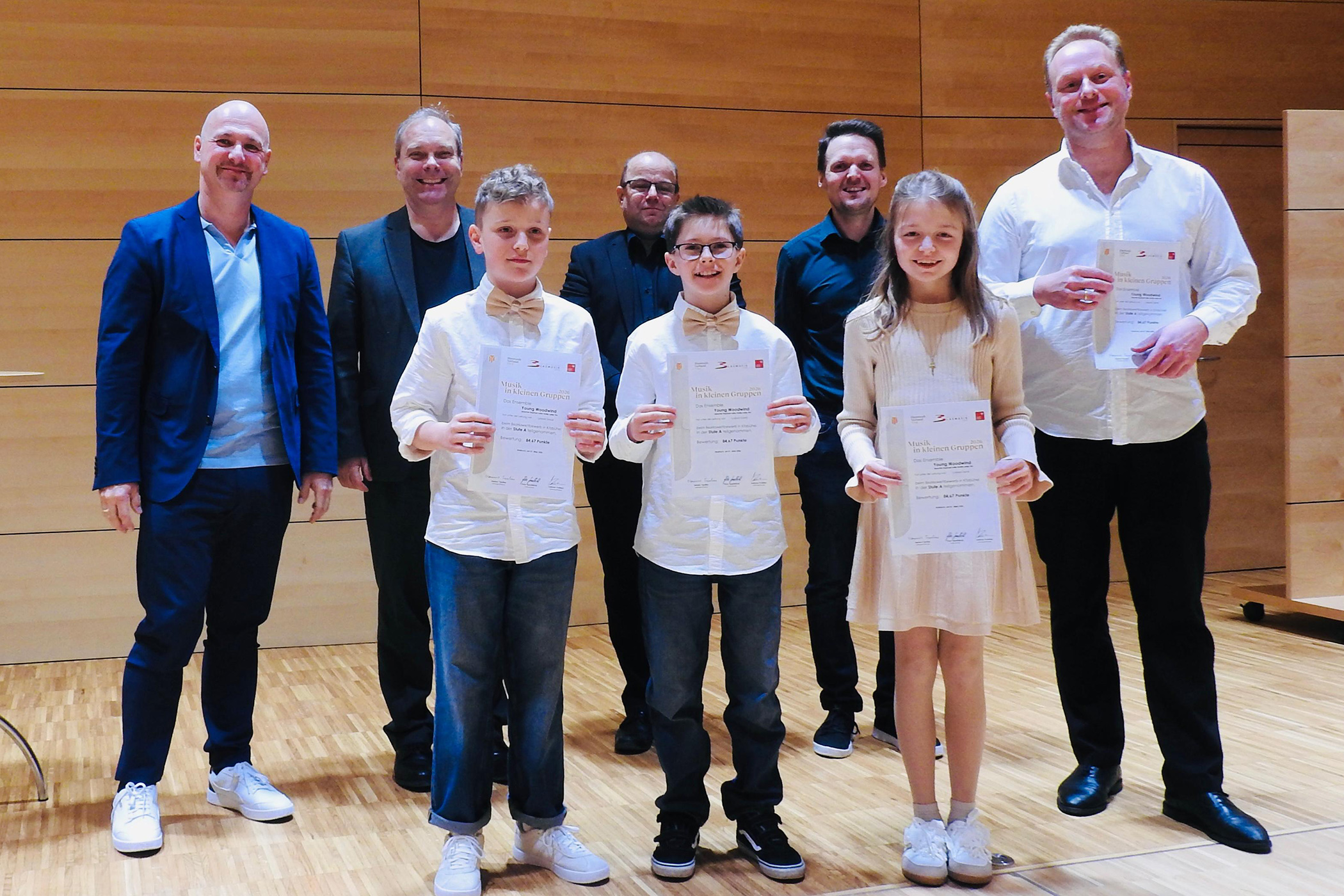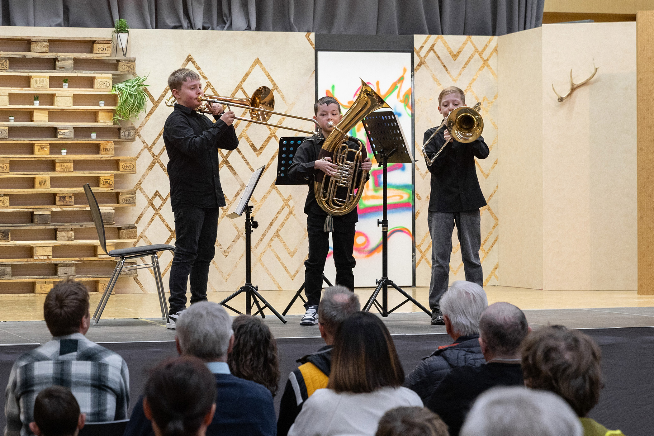 In der jüngsten Altersgruppe Junior musizierte das Blechbläser-Trio „Die Blechis“ unter der Leitung von Manuel Wibmer. Alexander Putzhuber, Emanuel Wibmer und Sebastian Steiner können sich über 91,00 Punkte und eine Fahrkarte zum Landeswettbewerb freuen.