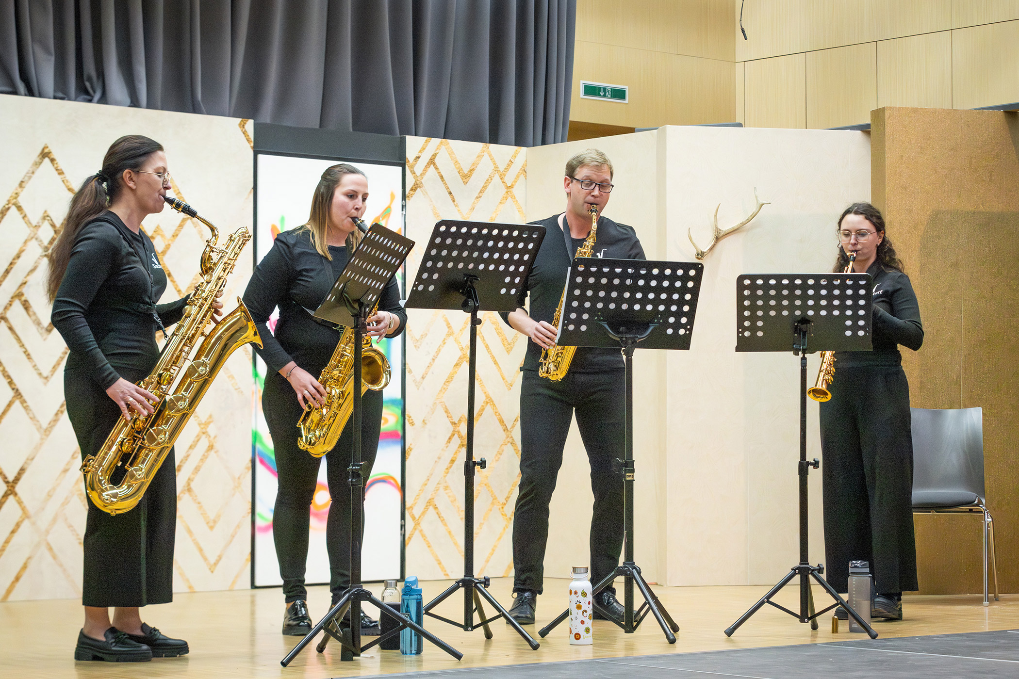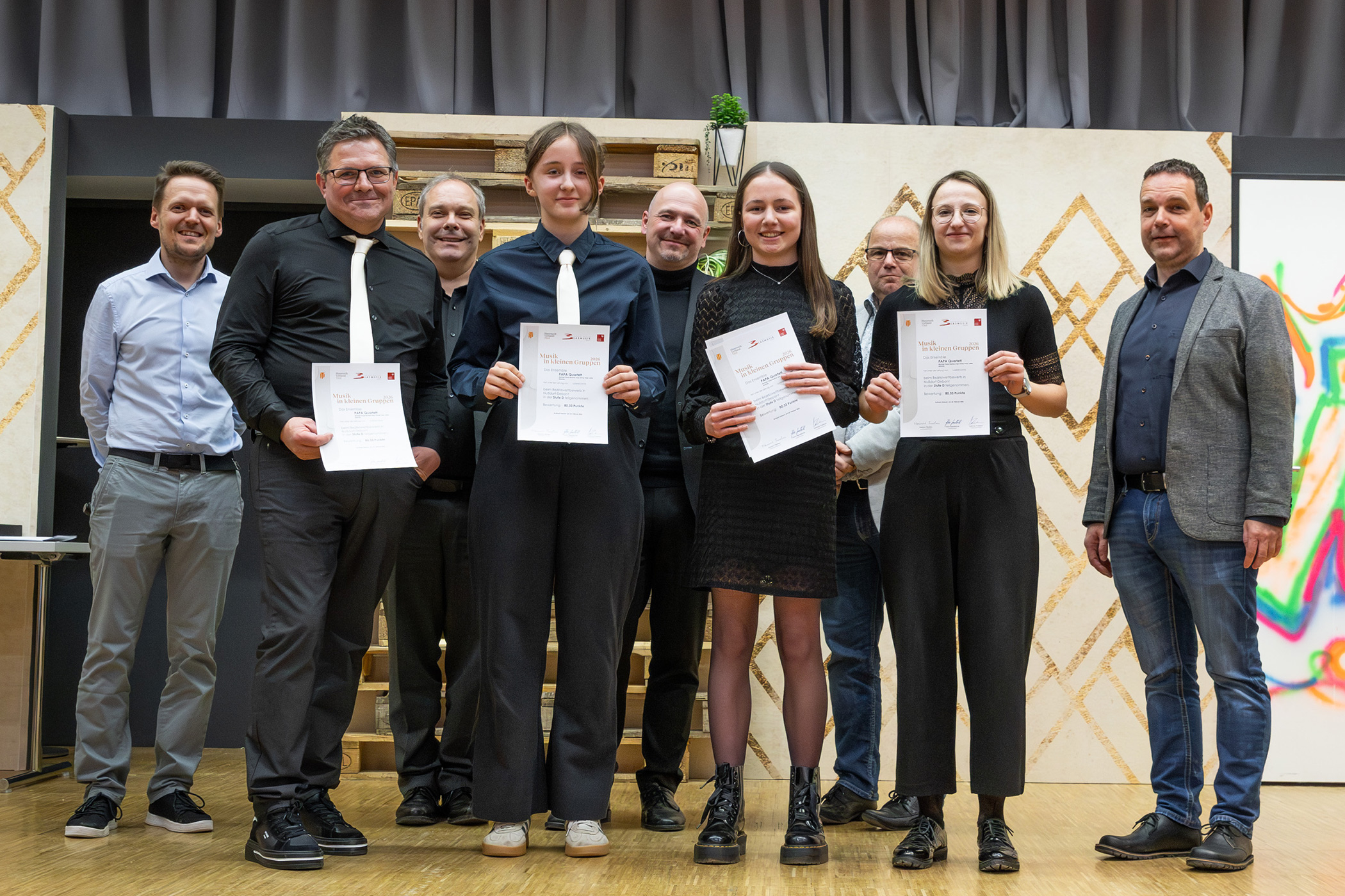Die Saxophonist:innen Antonia Leiter, Paula Aichner, Anja Bodner und Peter Ornter aus Abfaltersbach bilden das „PAPA Quartett“ und erspielten 80,33 Punkte.