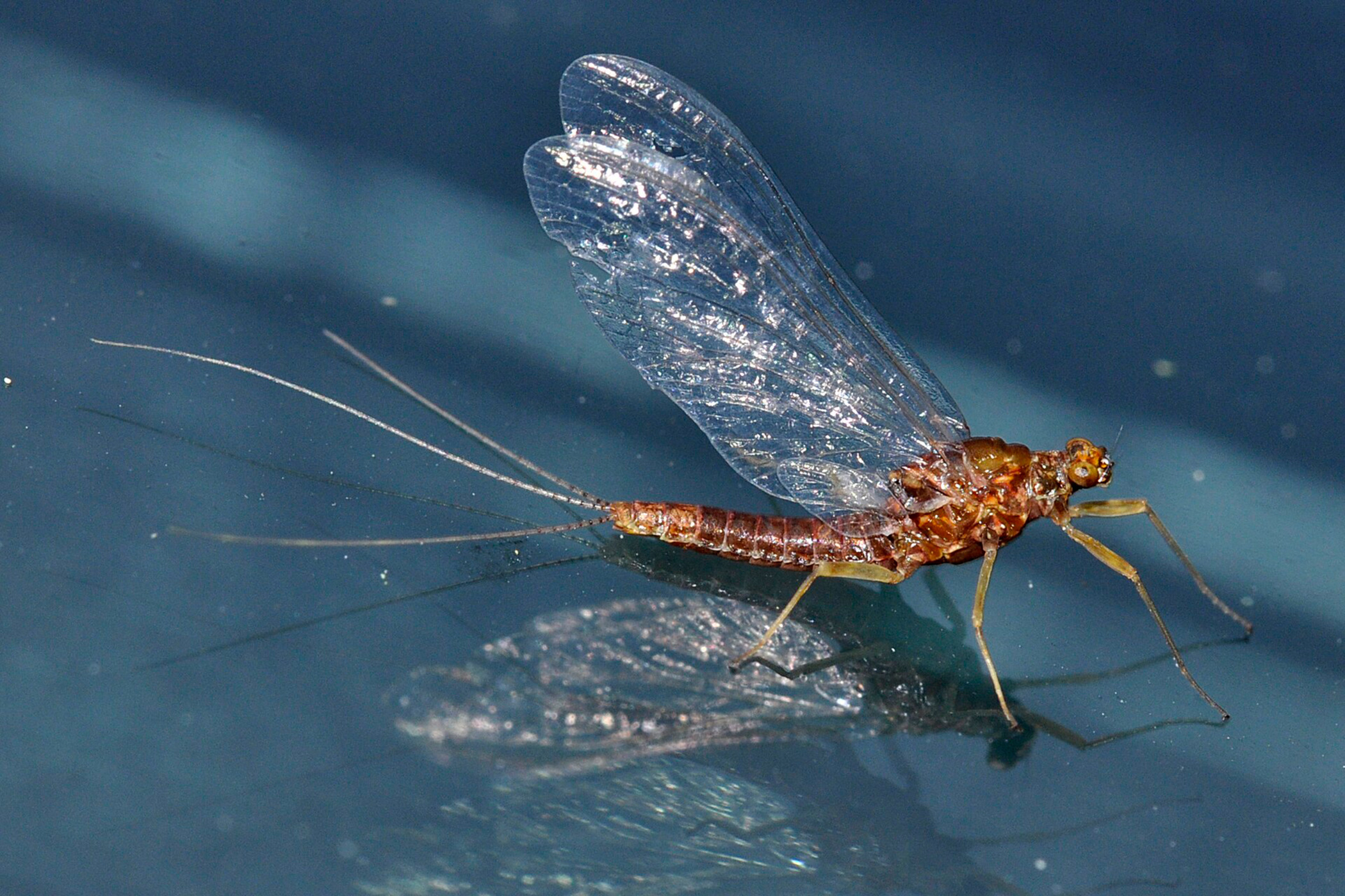 Sich äußerst gelenkig im Fliegen lieben und das möglichst schnell: Wie Eintagsfliegen das in ihrem doch sehr kurzen Leben schaffen, zeigt nun eine Studie des Naturkundemuseums Stuttgart. Forscher haben dafür – etwas indiskret – erstmals das Paarungsritual der Insekten der Gattung Ecdyonurus in den Blick genommen und mithilfe modernster Computertomographie detailgenau analysiert. Die Liebespaare mussten dafür allerdings schockgefrostet werden.