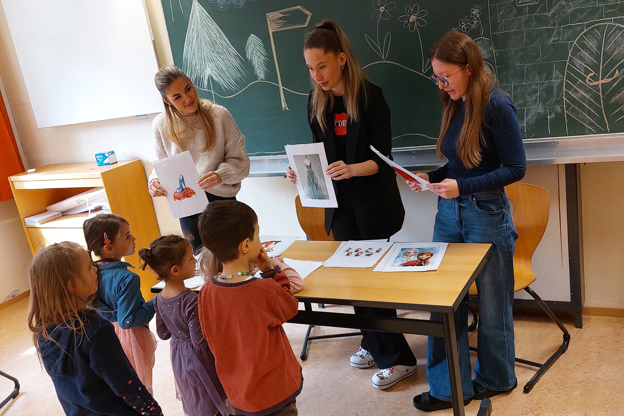 In Kleingruppen begaben sie sich auf einen märchenhaften Rundgang durch das Schulhaus: Entlang des Märchenwegs warteten vielfältige Stationen darauf, entdeckt zu werden. Begeisterung löste das Erzähltheater mit dem Froschkönig aus, während an einer Zaubertrank‑Station bunte, magische Getränke gemixt wurden.