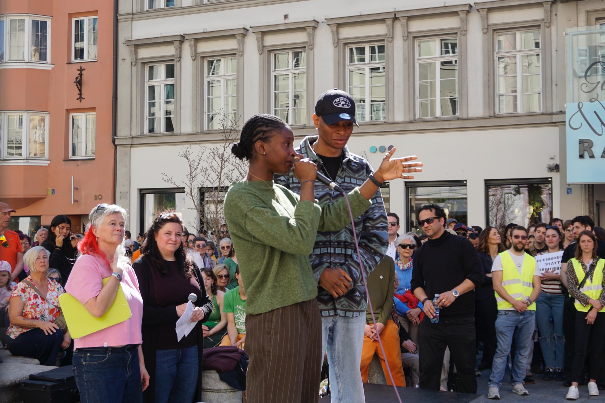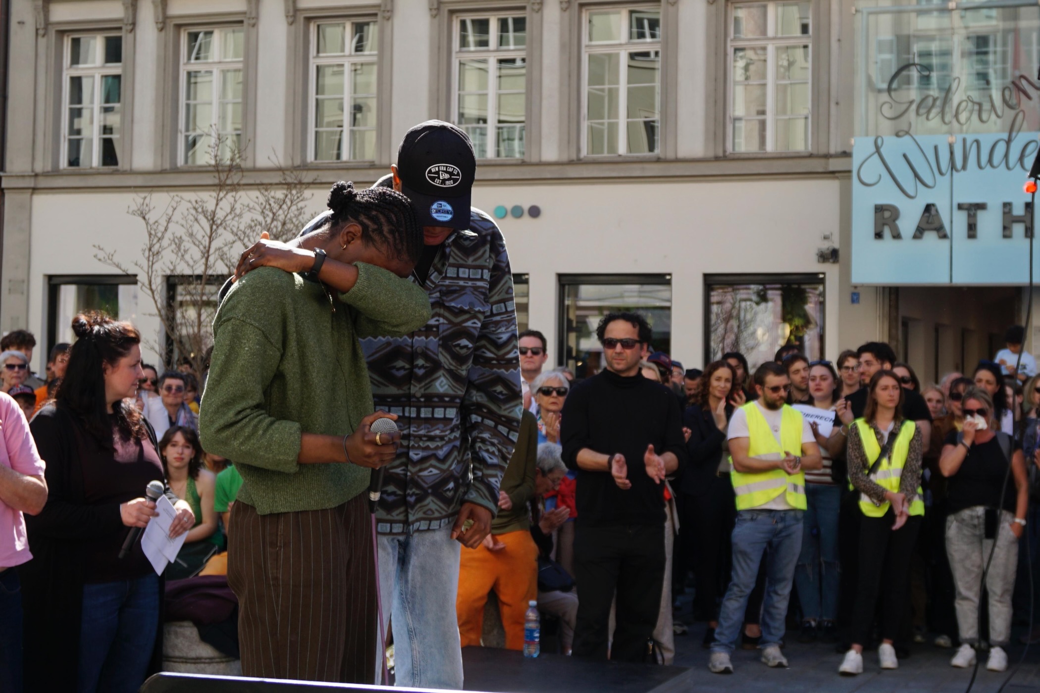 „Welche Botschaft übermitteln wir an Personen, die sich aktuell in einem Integrationsprozess befinden, wenn zwei Menschen abgeschoben werden, die jegliche Integrationsanforderung übertroffen haben? Haben inspirierende Taten und außerordentliche Errungenschaften denn gar nichts mehr zu bedeuten“, fragte sich eine weitere Kundgebungsteilnehmerin.