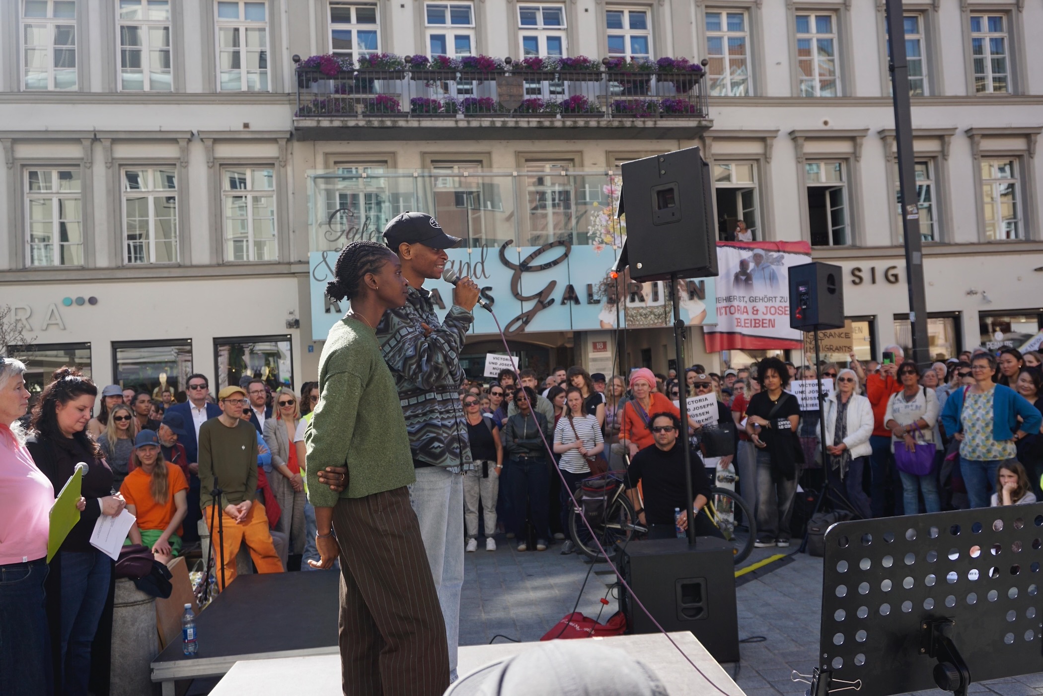 Mit LHStv. Philip Wohlgemuth, LR Eva Pawlata und LR René Zumtobel gehörte auch der rote Teil der Tiroler Landesregierung zur Gänze zu den Teilnehmenden der Kundgebung. Die Stimme für Joseph und Victoria Oshakuade erhoben an diesem Tag andere.
