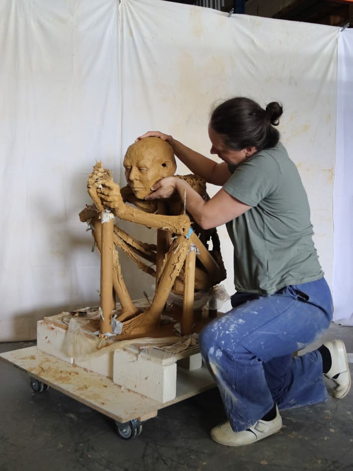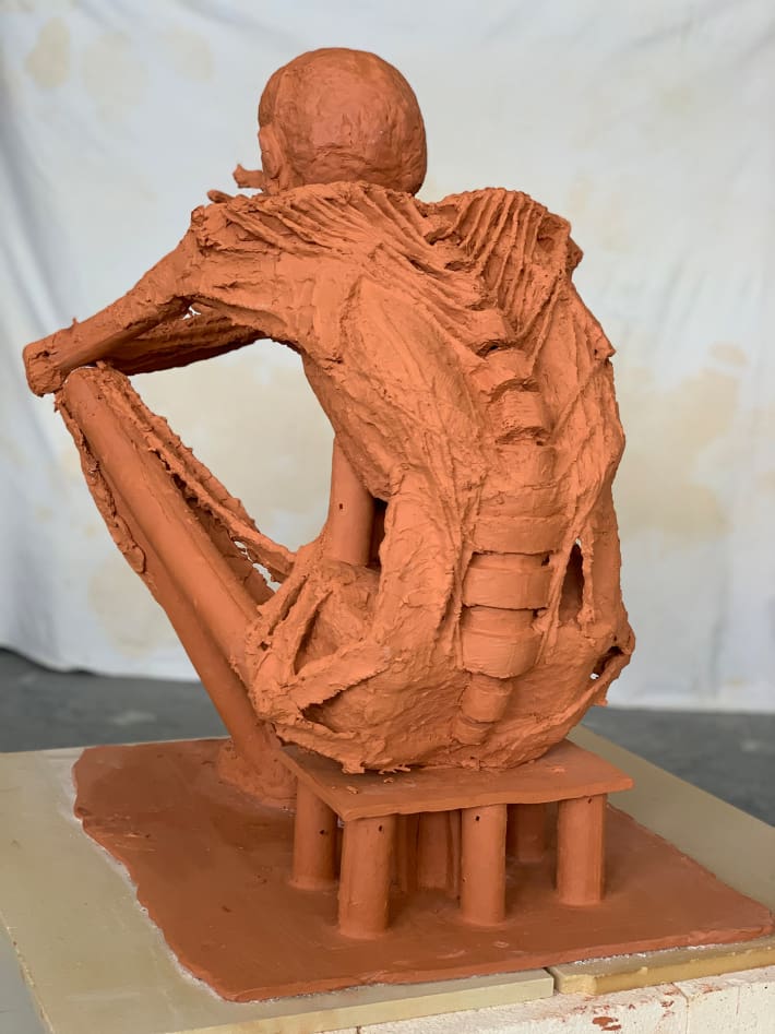 Damit aber nicht genug: Die Kommunikation mit den Big Playern ist ein Geben und Nehmen, in dem die Masse der Armen bedenkenlos die Reichen zu füttern bereit ist. Die von Markus Gabriel skizzierte Perspektive, dass die künstliche Intelligenz alles, was sich digitalisieren lässt – Sprache, Verhalten, Problemlösen usw. – bald besser können wird als wir, hat der Menschheit nach Kopernikus, Darwin und Freud eine weitere, grundstürzende Kränkung hinzugefügt. Damit bekommen auch Lukassers Skulpturen, deren neueste sie, um sie durch Material und Handwerk zu erden, in Terrakotta verfestigt, eine neue, überraschend aktuelle Bedeutung.