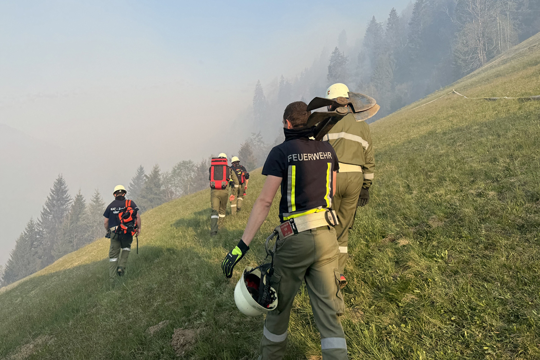 Es sei zu erwarten gewesen, dass sich das Feuer über Nacht ausbreitet, sagte Feuerwehr-Sprecher Florian Jost am Samstag zur APA. In der Nacht können keine Hubschrauber fliegen, der Wind sorgte für eine weitere Ausbreitung. Der Brand sei keine geschlossene Fläche - „hier ein Graben, dort ein Graben, je nachdem wie der Wind geht“. Auf dem bereits abgebrannten Gelände sind inzwischen Feuerwehrleute mit Rückenspritzen im Einsatz, die Glutnester ausgraben und ablöschen - eine sehr anstrengende Arbeit.