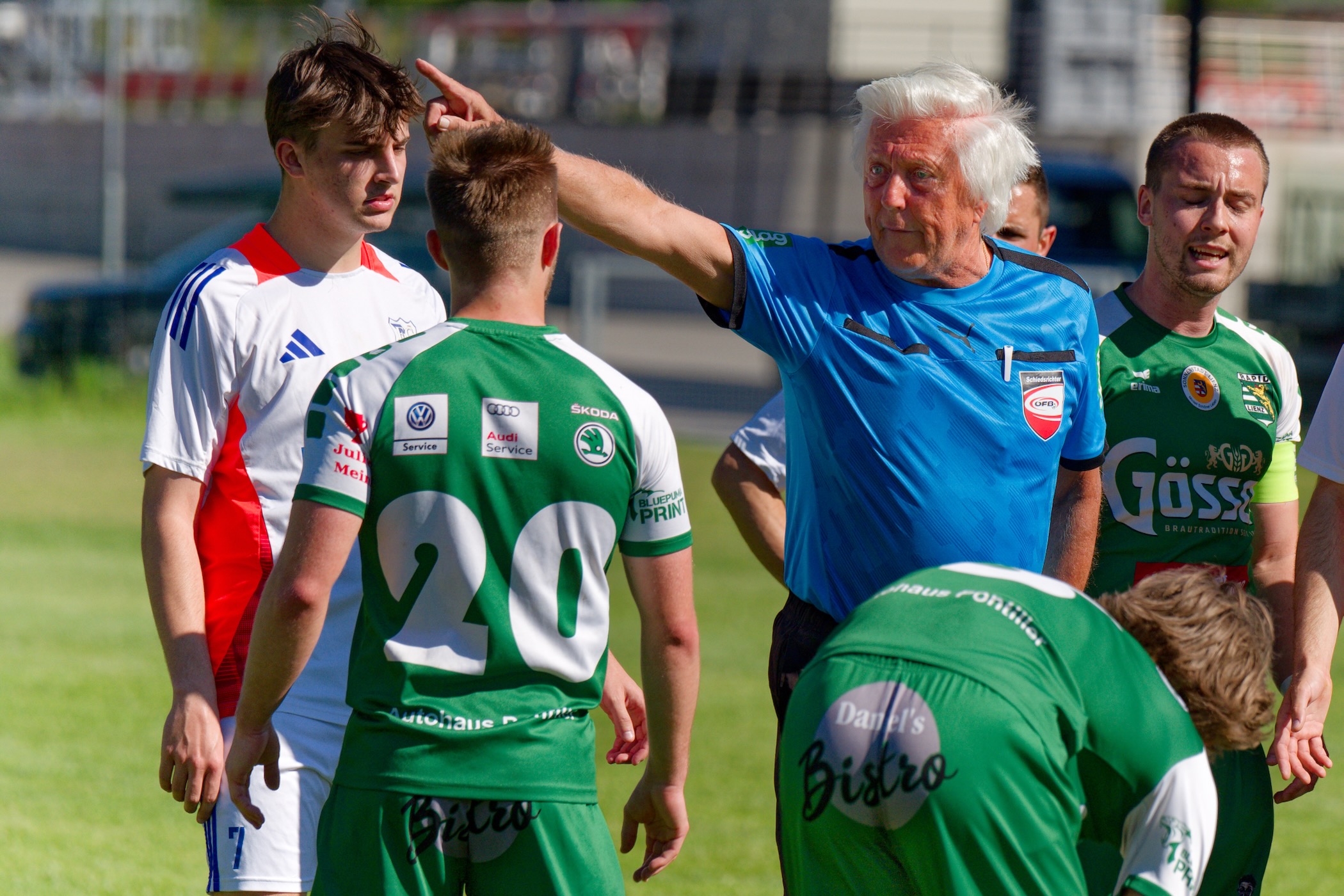 Für den Aufreger der ersten Halbzeit sorgte schließlich der Schiedsrichter: Nachdem Hasan Duranovic nach einem Zweikampf mit dem Dölsacher Torhüter zunächst die Gelbe Karte gesehen hatte, wurde er nur wenige Minuten später nach einem weiteren Foulspiel mit Gelb-Rot vom Platz gestellt. Eine Entscheidung, die im Lager der Gäste und bei vielen Zuschauern für ungläubiges Kopfschütteln sorgte, während andere sie mit einem Schmunzeln zur Kenntnis nahmen.