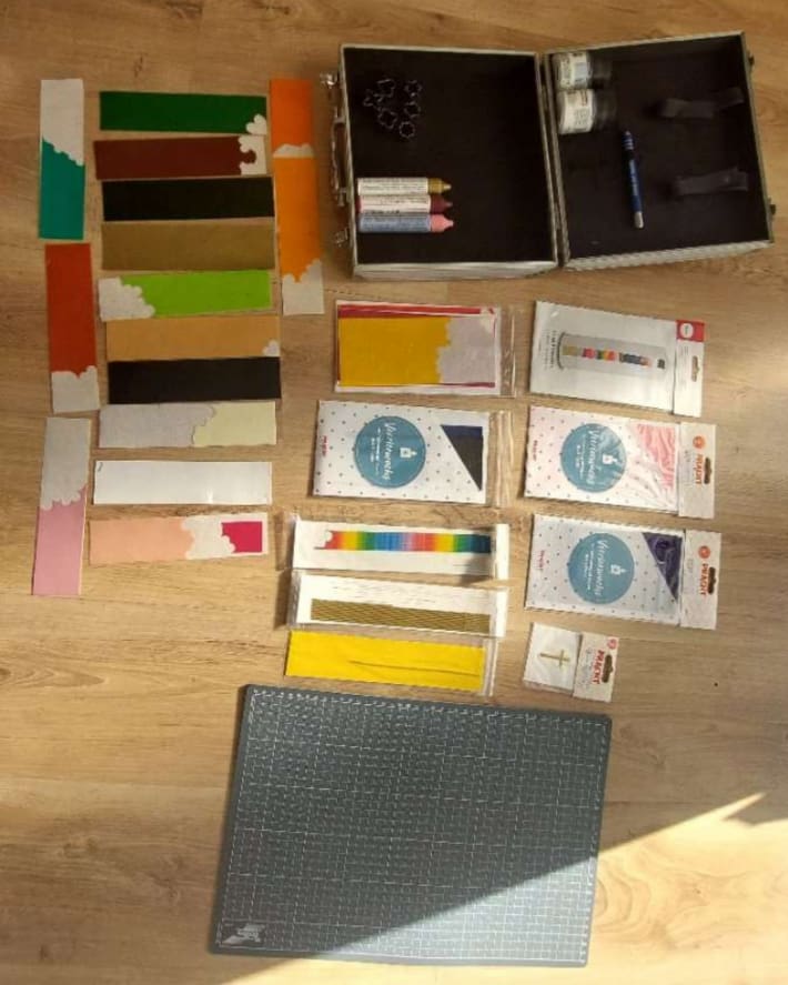Mit verschieden farbigen Platten, tlw. originalverpackt, Decoupage, 3 Wachsmappen, Koffer, GONIS-Messer ...