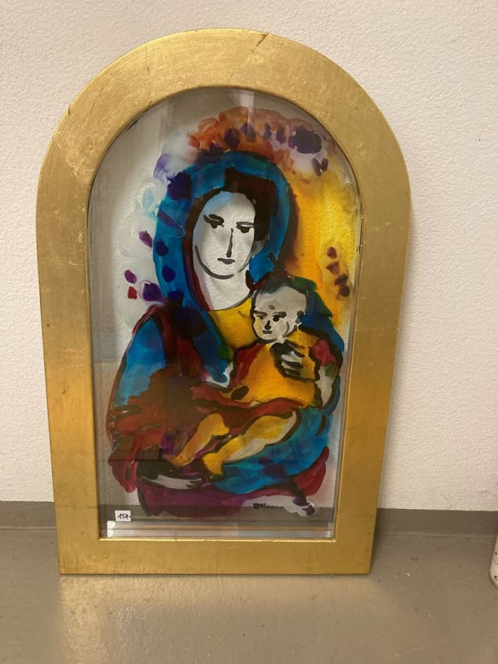 „Muttergottes mit Kind“ von Honny, 75x47 cm, mit goldenem Rahmen, sehr massiv und schwer