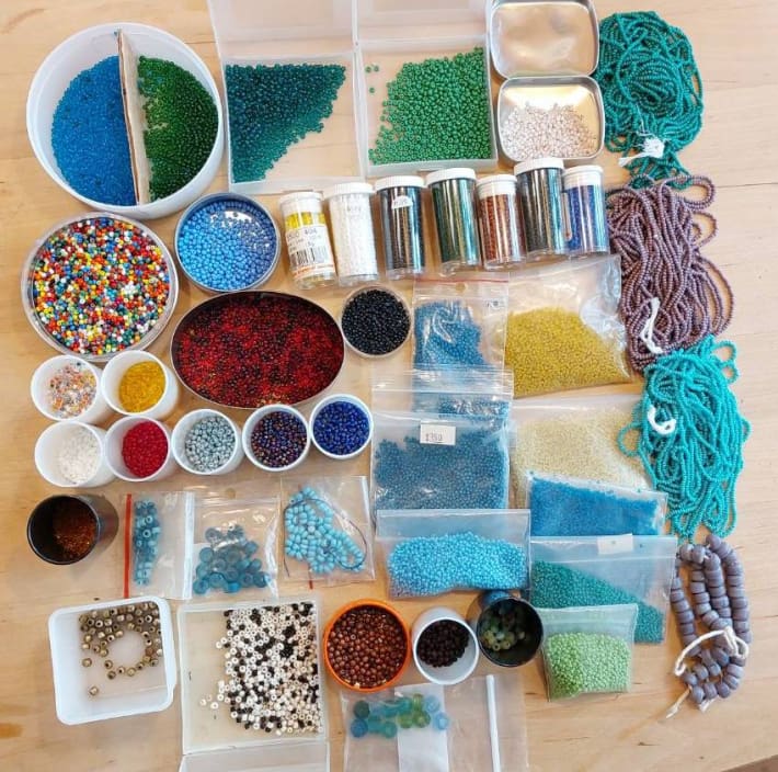 Trenne mich von meinem Perlenvorrat - kleine (für Perlenstickerei), etwas größere (für Schmuck).