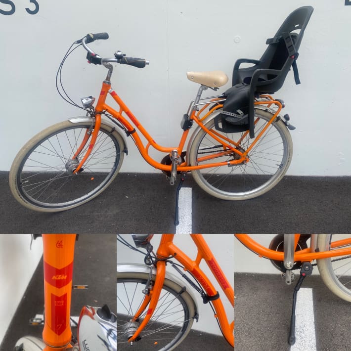 Citybike KTM Tourella in Orange. 7 Gänge, Lenkerkippschutz und stabiler Ständer. Mit oder ohne Kindersitz erhältlich