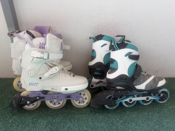 My fit (weiß-lila): US W 10-11, USM 9-10, EU: 42-43, um 150€ (neu 270); Firefly (schwarz), US10,EU10, um 50€ (neu: 120)