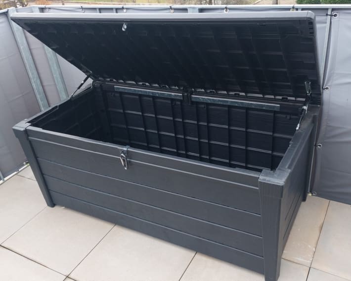 Hält verstaute Gegenstände trocken, auch als Sitzbank verwendbar, wetterfest Höhe 60 cm, Breite 145 cm, Tiefe 70 cm