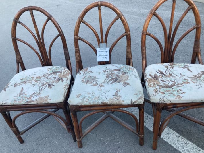 Holz/Rattan, mit Polsterauflagen, Setpreis € 25,-