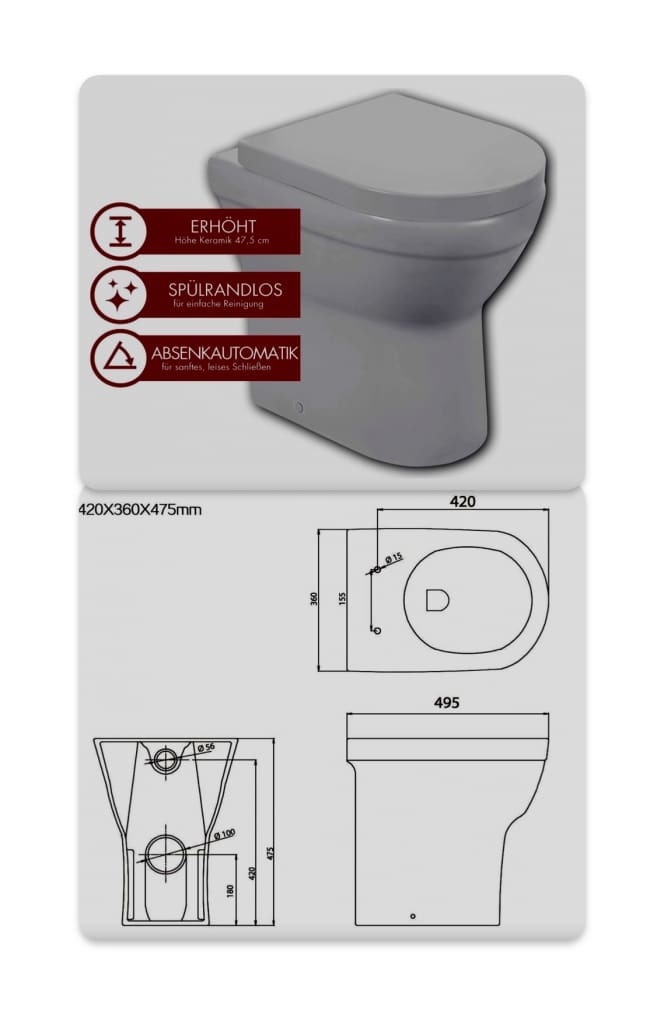 Verosan Tiefspül Stand-WC Cozy Spülrandlos inkl. Sitz weiß - erhöht auf 47,5 cm, Muster - ohne Verpackung statt € 229,-