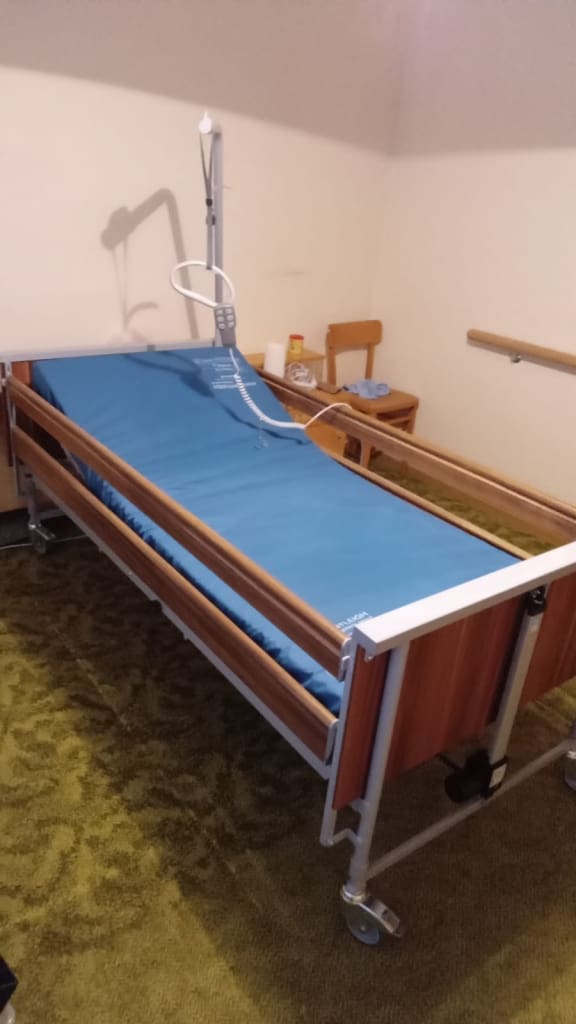 Verkaufe ein gut erhaltenes elektrisches Pflegebett mit Matratze für Druckentlastung (kein Wundliegen).