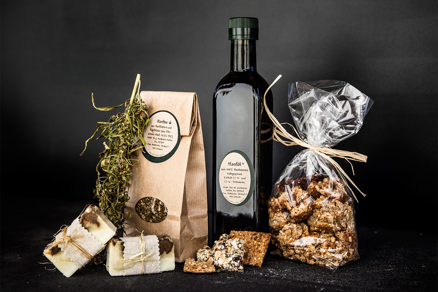 Ausdauer, eine gute Zusammenarbeit und vor allem gemeinsame Investitionen sind also das Erfolgsrezept dieses innovativen Trios. So kaufte Bernhard Astner die notwendige Schälmaschine und Heinz Bachlechner eine Ölpresse. Und damit ist die Verarbeitung der von ihnen gewählten Hanfprodukte gewährleistet. Bereits im ersten Jahr war nach dem Dreschen, Trocknen, Putzen, Schälen und Pressen ihres Osttiroler Hanfs eine imposante Produktserie da: Hanföl, geschälte Hanfnüsse, Hanfproteinpulver, Hanftee, Müsliriegel, Badesalz und Seifen.