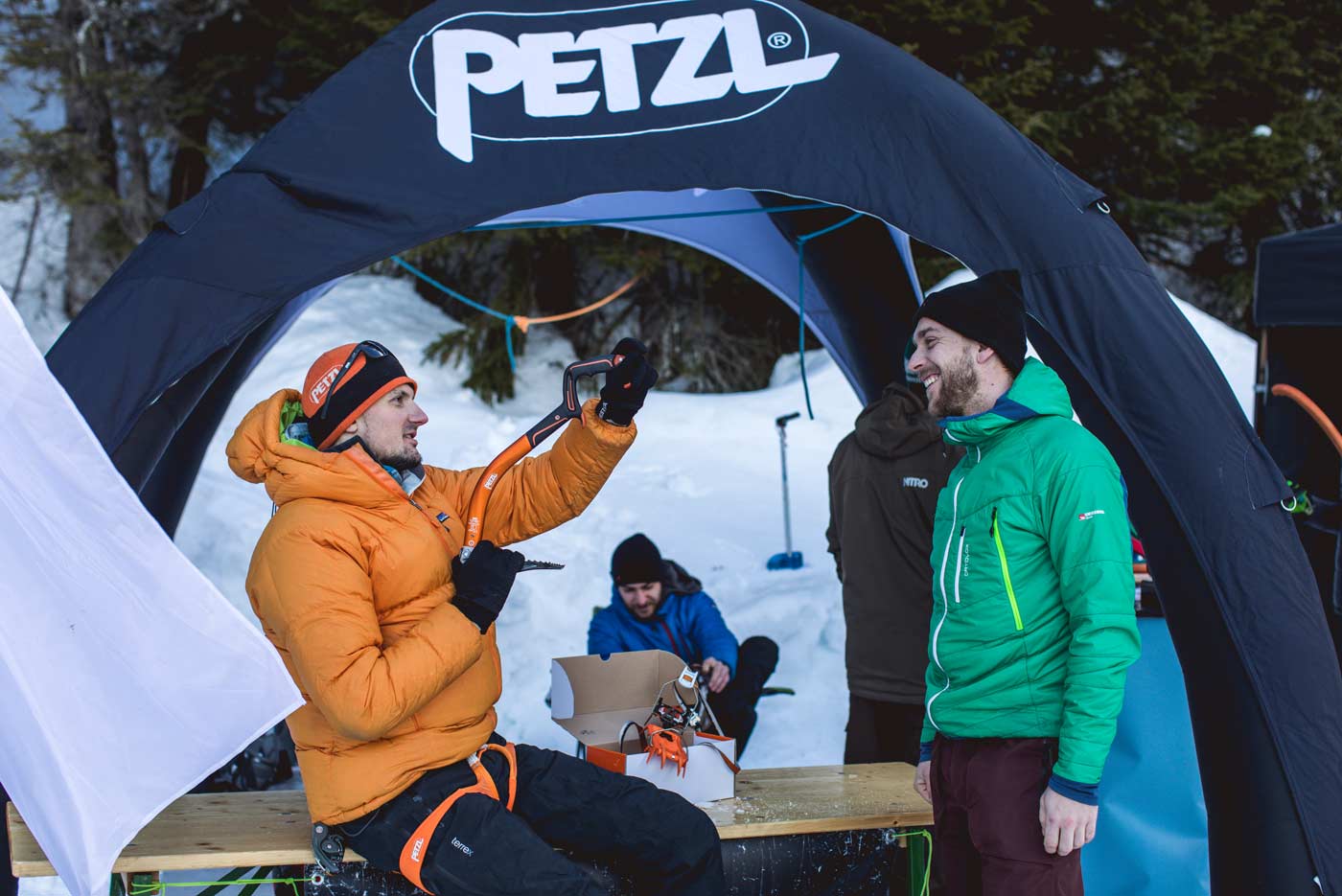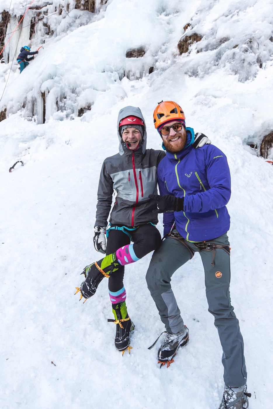 Auch Pierre und Max aus Marburg wurden im steilen Eis- und Mixed-Gelände vom Top-Athleten Jeff Mercier persönlich gecoacht. Wir wollen daher von ihnen wissen, wie es denn so ist, von dieser Größe des Sports Tipps zu erhalten? „Es ist einfach toll. Jeff ist so bemüht, bodenständig und nahbar“, so die beiden unisono. Sie hätten ein paar wertvolle Tipps bekommen und Bewegungsabläufe gelernt, von denen sie trotz ihrer Erfahrungen im Eis bisher noch nichts wussten.