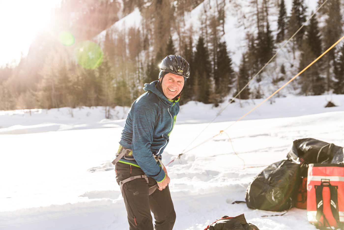 Bergführer Lukas Pichler ist ein Mann der ersten Stunde im Eispark Osttirol. Er findet, dass sich Frauen meist gerade am Anfang geschickter im Eis bewegen und die anderen physischen Voraussetzungen mit Technik und mehr Gefühl wettmachen würden. „Denn einfach mit viel überschüssiger Kraft auf den Eiszapfen herumzuschlagen ist bei diesem Sport alles andere als förderlich, sondern gefährlich“, betont Lukas. Seine Lieblingseissorte ist übrigens Vanille.