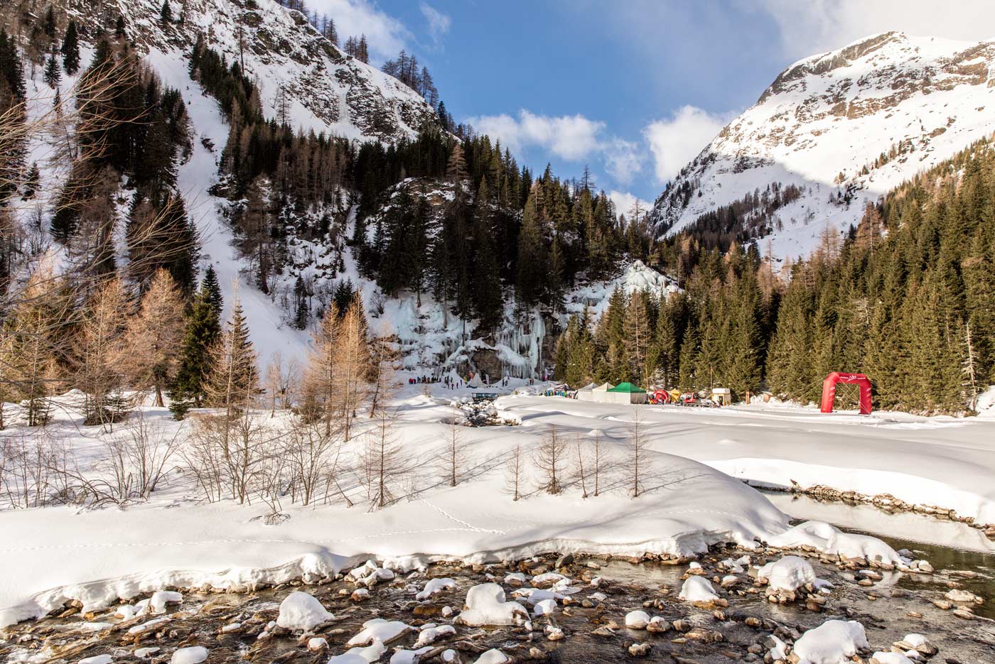 Es ist ein ganz spezielles Sportevent, das Eiskletterfestival, das am zweiten Jänner-Wochenende 2020 zum mittlerweile fünften Mal im Tauerntal über die Bühne ging. Veranstaltet von der Alpinplattform Osttirol und vor Ort umgesetzt vom Verein der Freunde des Eisparks lebt dieses Festival vom Spirit der Szene, einer atemberaubend schönen Kulisse, vor allem aber – von der Kälte! Während andernorts in Zeiten der Erderwärmung immer seltener geeignetes Eis zu finden ist, punktet der künstlich angelegte Kletterpark im Tauerntal mit seiner besonderen Lage und über 70 Routen. Auch heuer wurde die Lawinensituation im Vorfeld von Vereinsmitglied Peter Fuetsch und Patrick Nairz vom Tiroler Lawinenwarndienst begutachtet. Schon am Freitagabend machte Eiskletter-Ikone Jeff Mercier mit einem Vortrag im Tauernhaus Matrei Lust auf Eis. Tags darauf marschierten rund sechzig Workshop-Teilnehmer mit den Bergführern die zwanzig Gehminuten durch winterliche Landschaft vom Treffpunkt beim Tauernhaus in den Eispark.