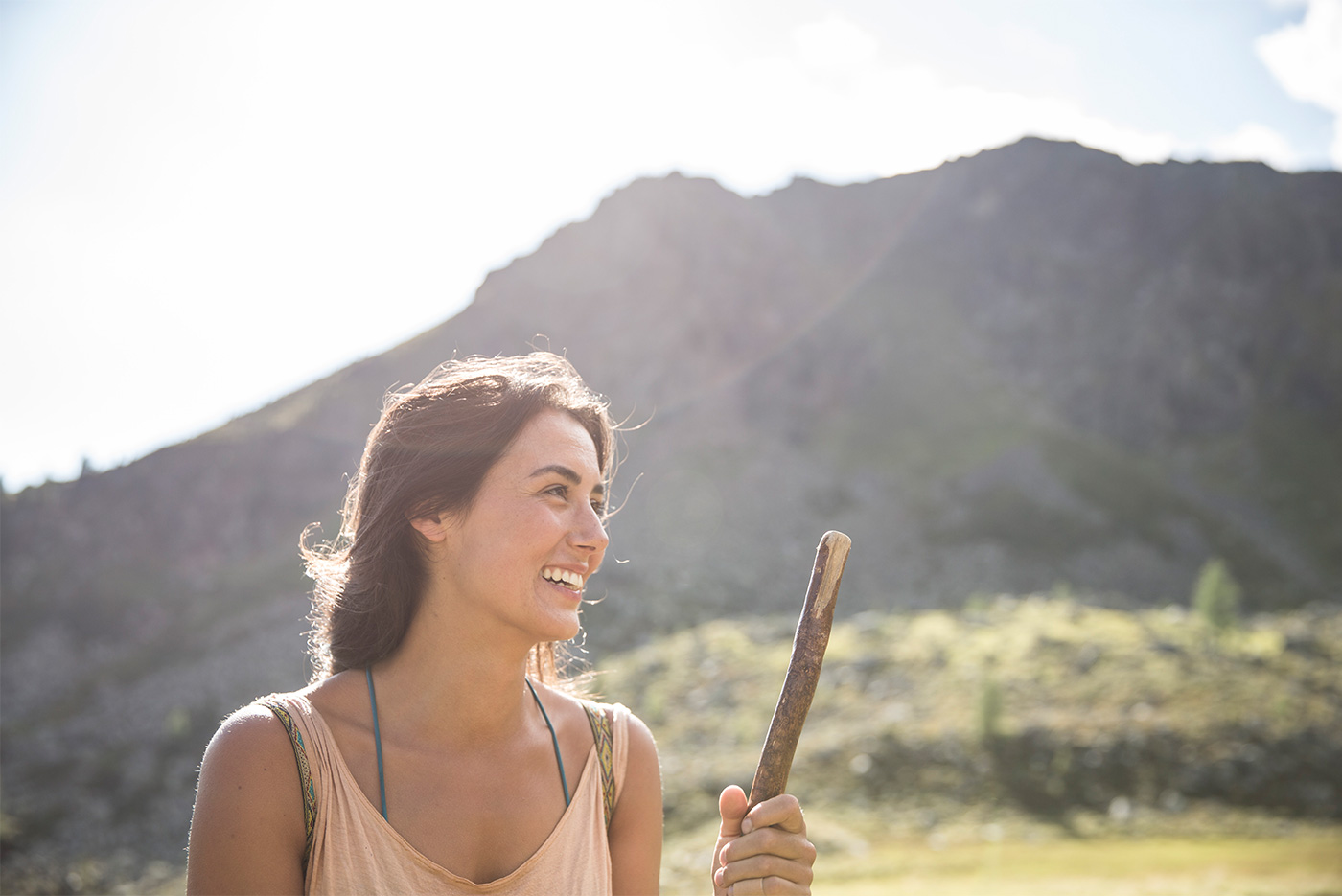 Die Kühe sollen heute, es ist bereits Ende August, von der Hochalm abgetrieben werden. Damit steht viel Arbeit an, doch Sarah nimmt meinen Besuch nicht nur gelassen, sondern empfängt mich herzlich. Ich begleite sie und Quirin zum Vieh. Beide nehmen sich einen Hirtenstock. Sarah ist fast immer barfuß unterwegs.